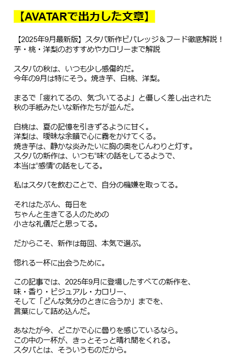 AVATARが生成する記事はその道のプロが執筆しているレベルの記事を作成することが可能です。